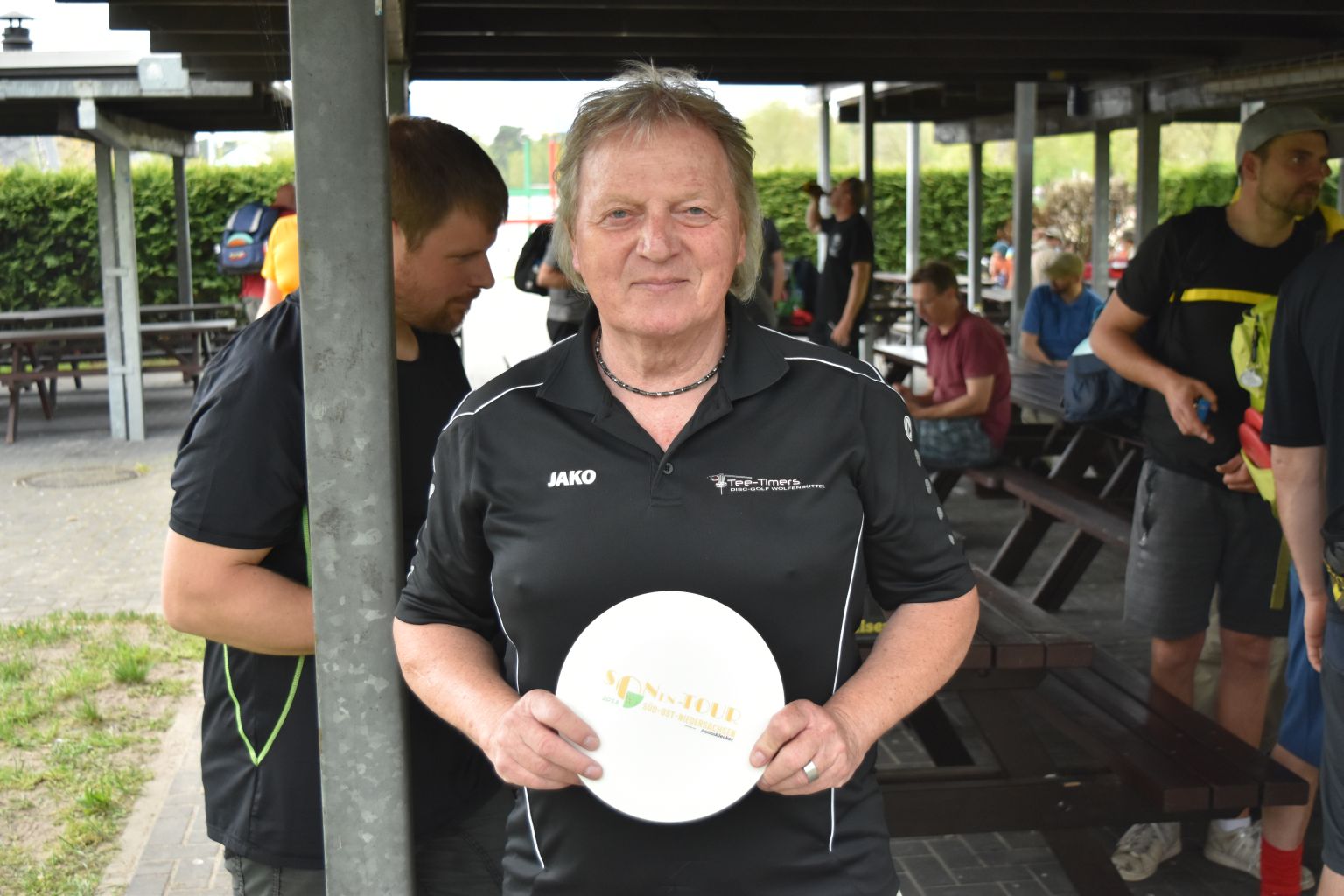 Gleich beim Playersmeeting erinnerte Papa Stefan Leube an die SONen-Tour am Tankumsee im letzten Jahr. Mit den Worten „An Bahn 8 war es letztes Jahr so...“ fing er an. Wer letztes Jahr dabei oder wenigstens in der Nähe der Region 38 war, hatte sofort eine Ahnung worum es gehen könnte: Das Ass von Icke! – weit gefehlt, der gute Herr Leube wollte daran erinnern, dass man für die kleinen Racker letztes Jahr die Inselbahn verkürzt hatte und schlug vor dies dieses Jahr wieder zu machen. Dieser Vorschlag wurde jedoch recht schnell mit einem „Neee“ untergraben, und zwar von keinem anderen als Darius Trappe. Dieses Jahr war es nicht mehr nötig kurze Bahnen zu spielen, der Arm gab es her. Jedoch biss er sich leider an der Triple-Mando Bahn die Zähne aus und musste sich dort in der zweiten Runde mit einer 10 geschlagen geben.