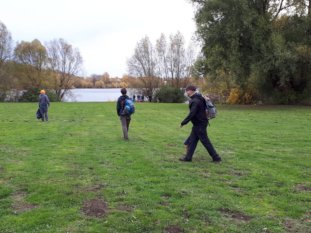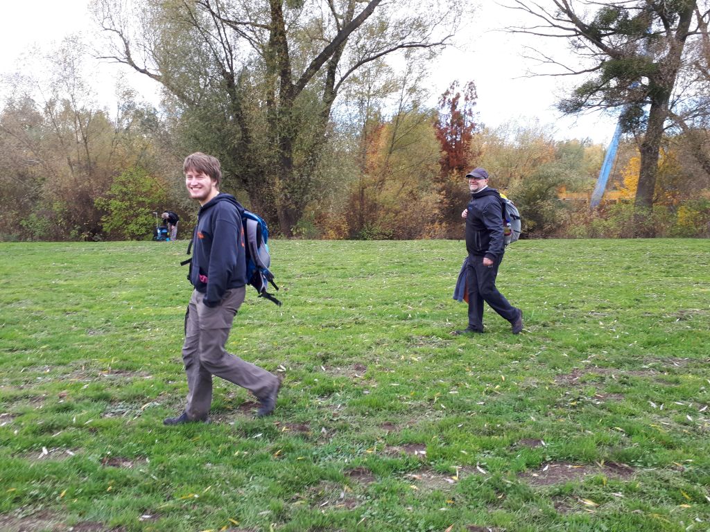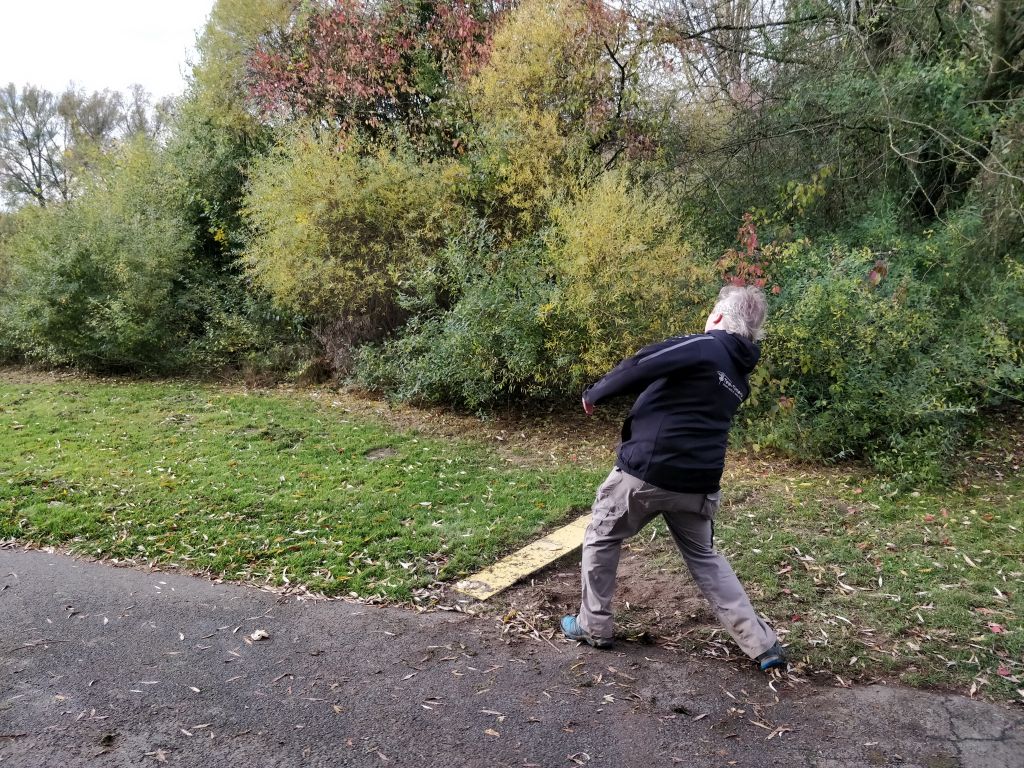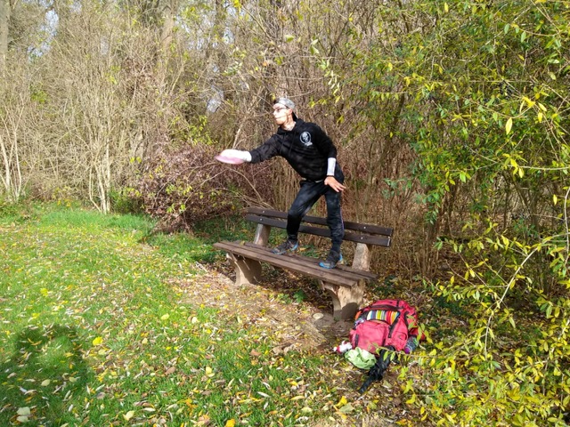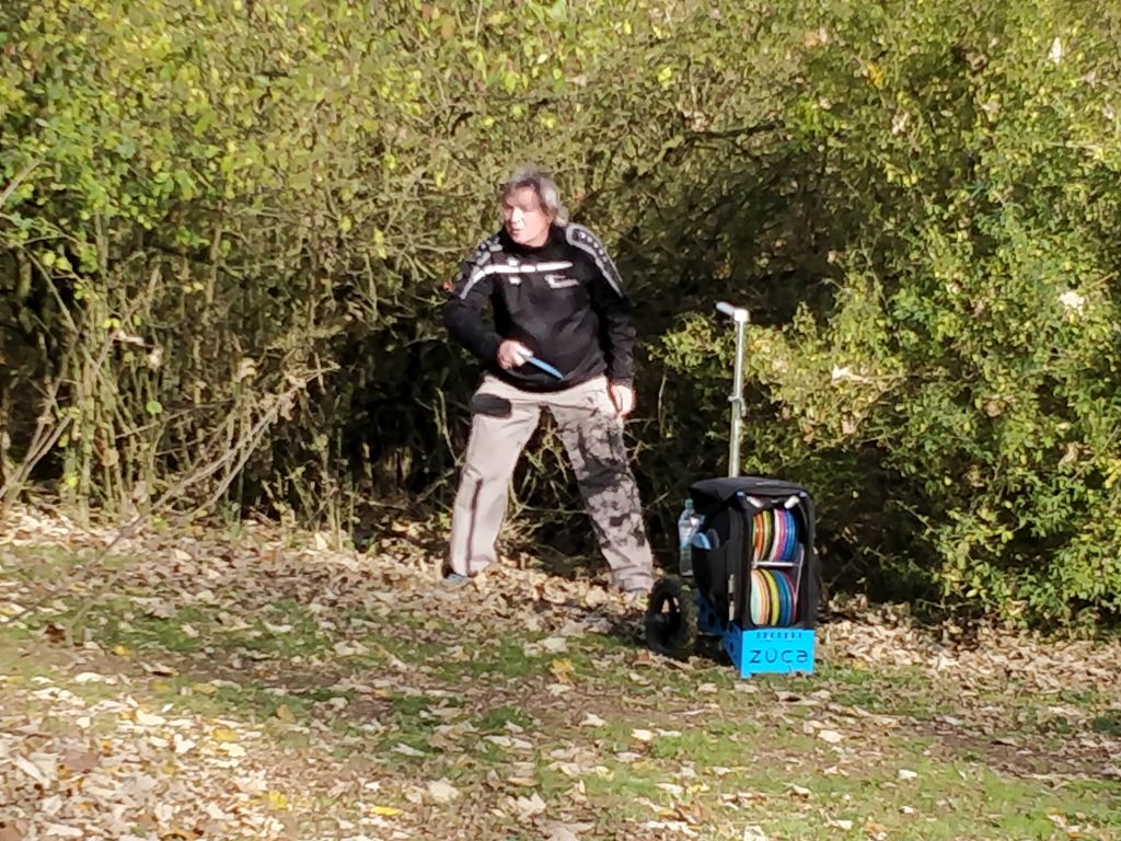 Aber dann doch pünktlich zum ersten Abwurf hört der Regen auf. Im Laufe des Vormittages wird das Wetter immer besser und der Wind immer fieser. Ich glaube, beim seltsamen Flugverhalten so mancher Scheibe waren auch mal senkrecht fallende Windböen am Werk. Aber dieses Problem haben ja alle Teilnehmer, mehr oder weniger.