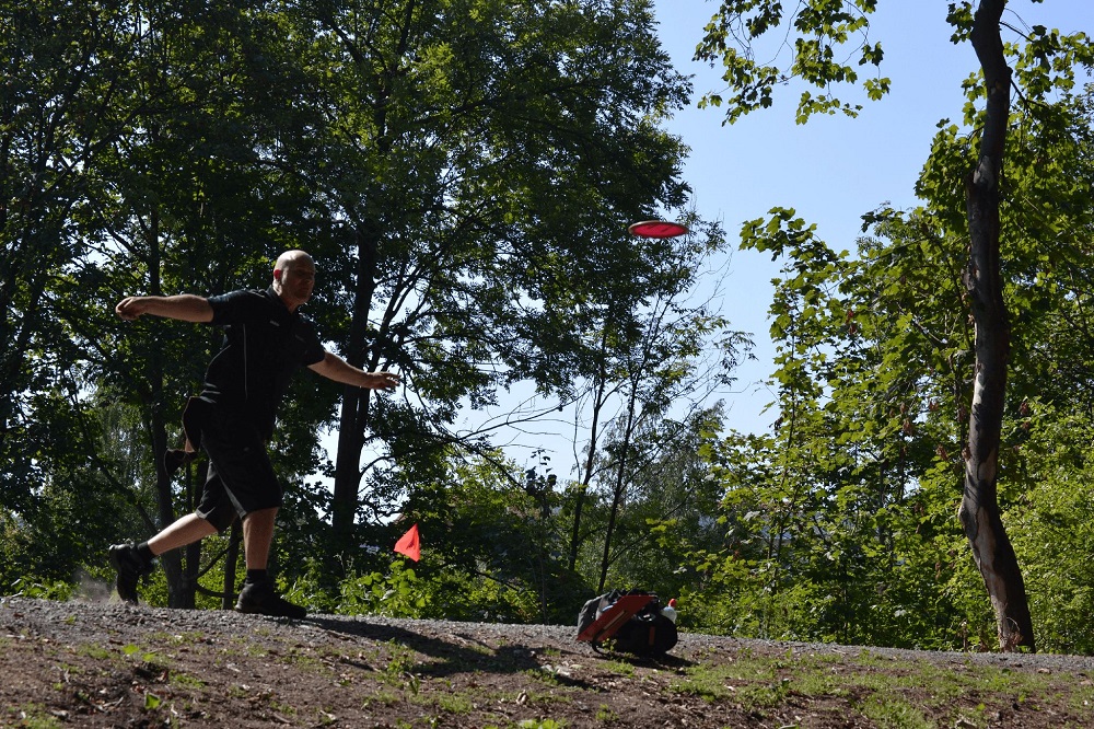 Zu einem heißen Showdown, der den tropischen Temperaturen von 36 Grad Celsius entsprach, kam es bei den Grandmasters. Detlef Ritterswürden und Andreas Hördt (beide Tee-Timers) lagen nach 36 Bahnen wurfgleich mit Jürgen Hengstler (Grebenstein) auf Platz 1. Ein CTP musste über den Divisionssieg entscheiden, bei dem Ritterswürden das beste Ende für sich hatte. Hördt konnte sich immerhin über den Gewinn des Ace-Pools freuen. Zwar gab es im Turnierverlauf kein Ass, doch TD Daniel Mohwinkel hatte für diesen Fall eine CTP-Wertung an Bahn 3 eingerichtet, die Hördt durch einen tollen Wurf fast unter den Korb gewann.