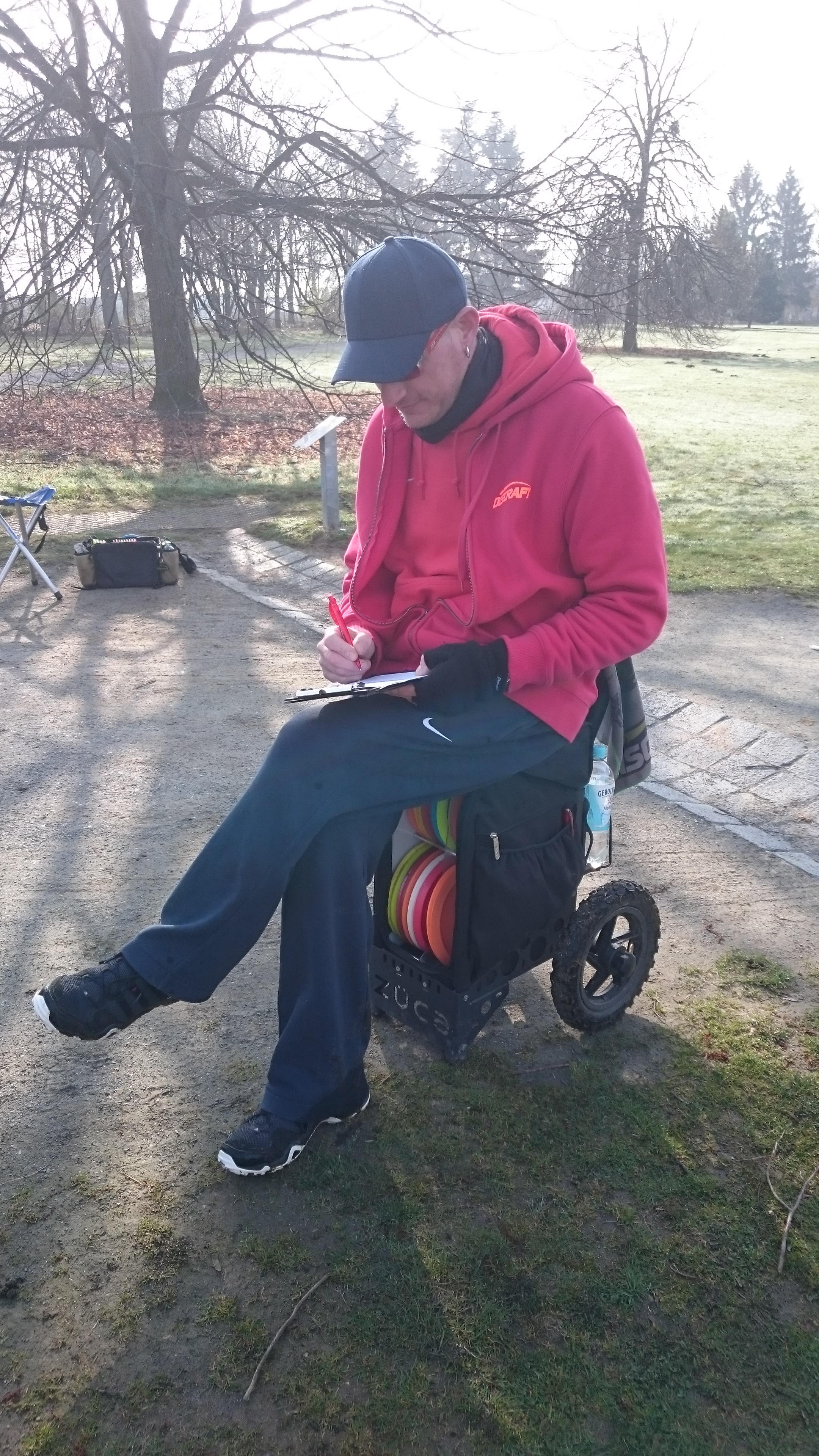 Wolfgang Breuer hat sich eine Scheibenkanone mit - siehe Bild - integrierter Toilette gebaut und erhofft sich dadurch Vorteile auf der kräftezehrenden Tour.