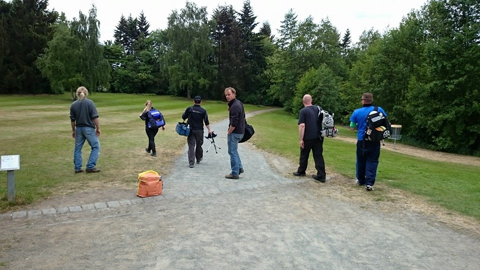 Insbesondere der Waldtunnel (Bahn 10) und die direkt am Seeufer liegende Bahn 11 sorgten öfters für lautere Unmutsbekundungen der Spieler. Einen der beiden Sieger beeindruckte das überhaupt nicht: Michael Schulenburg warf an Bahn 10 ein Rückhand-Ass! "Gesehen habe ich gar nichts, es hat nur geklingelt", so der junge Papa. Es war sein erstes in einem Turnier und eines, was sicher kaum einem Spieler bislang auf dieser Bahn gelang. Herzlichen Glückwunsch, lieber Michael. Seine Ass-Scheibe (Mantis) nahm er natürlich mit auf das Siegerfoto und wird sie (aufgrund der Verlustgefahr) ab sofort nicht mehr spielen. Beflügelt von diesem Erlebnis, spielte er anschließend auf höchstem Niveau weiter und gewann das Turnier am Ende gemeinsam mit dem deutschen Top-Spieler Tobias Behrens souverän. Beide benötigten lediglich 60 Würfe (-12), eine klasse Leistung bei diesen Bedingungen! Dahinter teilten sich Folker Eckebrecht und Helge Henze vom Eulennest den Bronze-Rang, sie benötigten jeweils 64 Würfe (-8). Die Damenwertung konnte wieder einmal die favorisierte Beata Hergelova (78 Würfe, +6) vor Andrea Heinrich (Eulennest) mit 85 Würfen (+13) für sich entscheiden. Es hat wieder viel Spaß gemacht und die zahlreichen Teilnehmer an der Tour zeigen, dass sich der Discgolf-Sport in unserer Region immer größerer Beliebtheit erfreut. Einen immens großen Anteil daran haben die Tee-Timers aus Wolfenbüttel um Stefan "Benno" Brandes und Tourdirektor "Manni" Mund! Wir freuen uns schon auf das nächste "Scheibengewitter" in Helmstedt am 21. Juni!