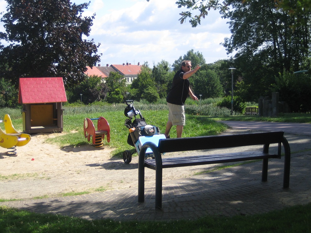 Schon vor Turnierbeginn hatte sich der sympathische Bartträger nützlich gemacht, um mit allen Spielern ein kleines Gratulationsvideo für Marvin Tetzel zu drehen. Der amtierende Junioren-Europameister hatte am Abend zuvor in Kalamazoo in Michigan/USA den Vize-Weltmeistertitel gewonnen, was natürlich für Begeisterung bei allen Disc-Golfern in unserer Region sorgte.
