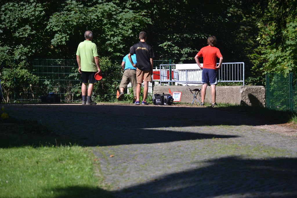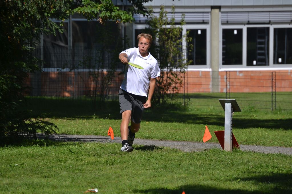 Im Vorfeld hatten die Tee-Timers Elias Güldenhaupt und Marvin Tetzel schon angekündigt, dass es an der Zeit sei, den zweiten Sieg beim Heimturnier nach Tobias Behrens 2012 zu landen. Dementsprechend lieferten sie eine wahre Birdie-Show und somit ein heißes Duell ab. Nach der ersten Runde führte Junioren-Vizeweltmeister Tetzel mit einer 46er Runde noch, doch dann packte Güldenhaupt die Tagesbestrunde (44) aus und fing den angehenden Lehramtsstudenten noch mit einem Wurf ab. Entscheidend war dabei das signature hole, die Bahn 8, an der Marvin mit einer 6 den Turniersieg liegen ließ. Diese Bahn, bei der bergauf zunächst ein Doppel-Mando zu durchspielen war und bei der der Korb im Hang oberhalb der Kasematte stand, ließ einige Hoffnungen platzen.