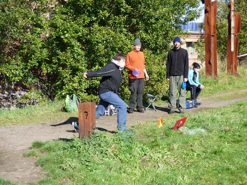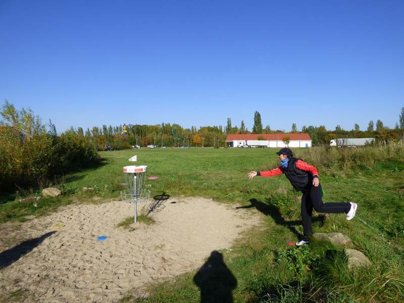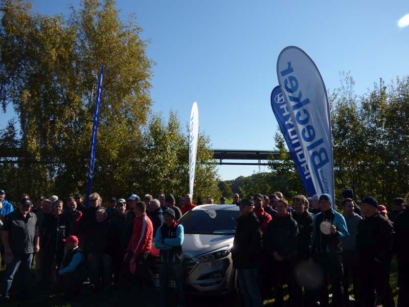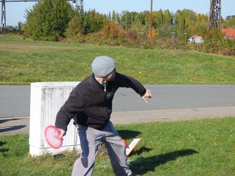 Nun hatte er die Pläne für den Niedersächsischen Frisbeesport-Verband (NFSV) wieder aus dem Keller geholt und den besten Disc-Golfern Niedersachsens zusammen mit seinen Helfern, allen voran Stephan Mesel, der für das Scoring verantwortlich zeichnete, 18 kurzweilige Bahnen hingestellt. Die wurden morgens durch Temperaturen um den Gefrierpunkt und im Verlauf des Tages durch aufkommenden Wind noch anspruchsvoller. Dafür wehten so die Fahnen um das Fahrzeug des Sponsors Hyundai, der durch das Autohaus Blecker aus Gifhorn vertreten war, umso eindrucksvoller.