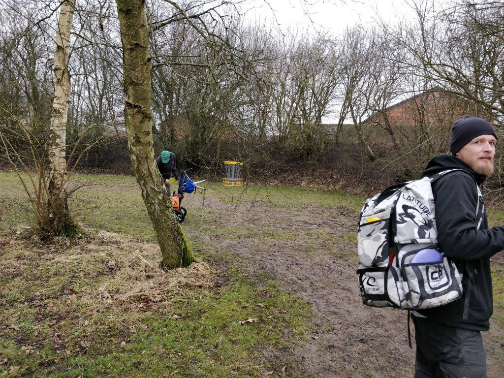 Die SONen-Tour in Dänemark ist komisch. Sie findet anscheinend wöchentlich statt, man beginnt ausgeschlafen um 12 Uhr und man spielt zu zweit. So war ich mir dann auch unsicher, ob es sich lohnen wird, dort aufzutauchen, aber nach einem kurzen SMS-Wechsel mit Martin Frederiksen (der Kurs-Designer, den ich bereits vor zwei Jahren dort kennen lernte), der mich ermutigte, einfach "vorbeizuschauen und Spaß zu haben", packte ich meinen kleinen Urlaubs-/Casualround- Rucksack und machte mich auf den Weg aus dem Süden von Aarhus in den Nord-Westen der selben Stadt. Tilst Bypark war das Ziel und weil ich dort nicht zum ersten Mal war, wusste ich schon ungefähr welcher Kurs mich erwartete, aber ich war gespannt auf das Redesign von Martin. Dazu war noch bestes Discgolf-Wetter: über 0°C und nur leichte Nässe von oben.