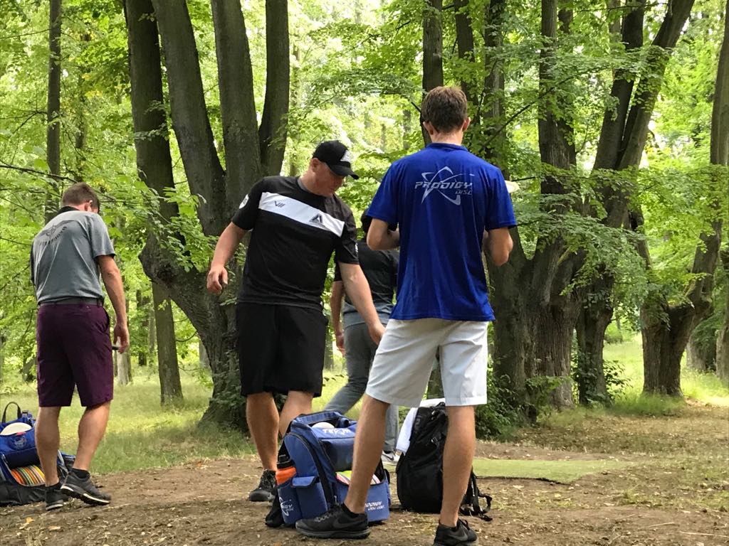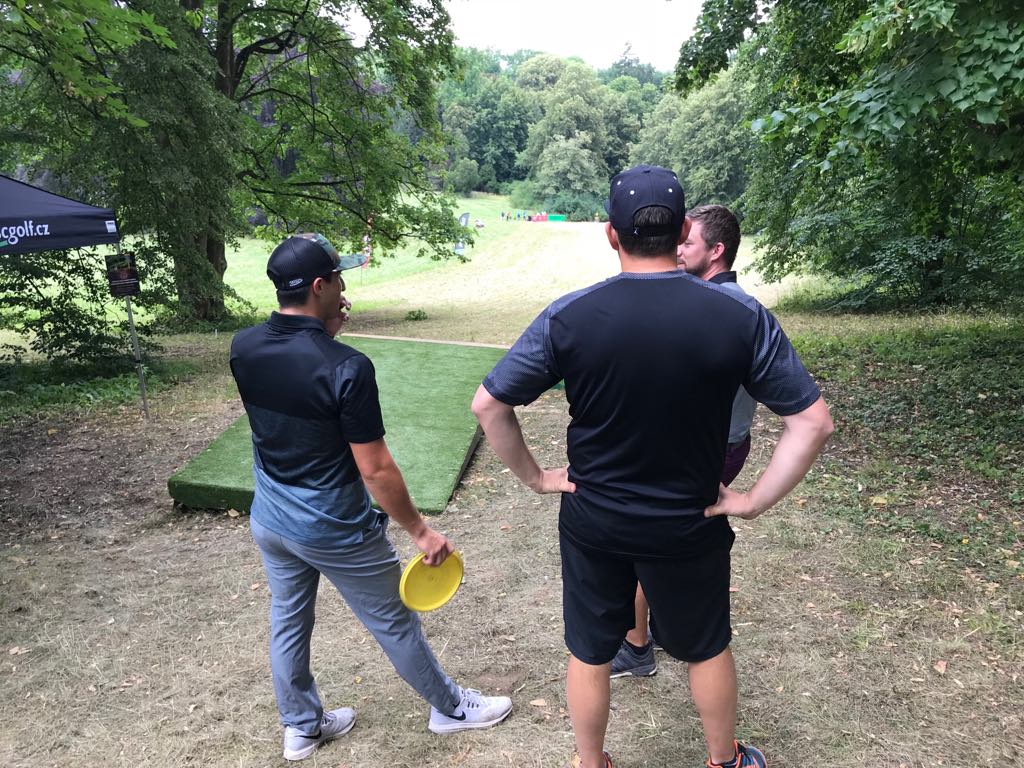 Donnerstag dann zwei Runden auf dem Challenger Parcours gedreht, während andere den Tag genutzt haben um nach Prag zu fahren und dort Musikfachgeschäfte aufgesucht haben. Uns erwartete ein super präparierter Kurs, der extra für das Turnier aufgebaut wurde. Kurze knackige Bahnen wechselten sich mit super anspruchsvollen langen Bahnen ab. Um da gut abzuschneiden braucht man wirklich jeden Wurftyp und zusätzlich eine sehr gute Reichweite! Abends standen dann auch die Tee-Times fest, wobei manche Glück hatten und zwischen 10 und 11 Uhr zu Ihrer Runden aufbrechen mussten, Andere mussten sehr früh raus, oder waren so ziemlich als letztes dran, was schlecht war um die Pros an dem Tag zu beobachten.